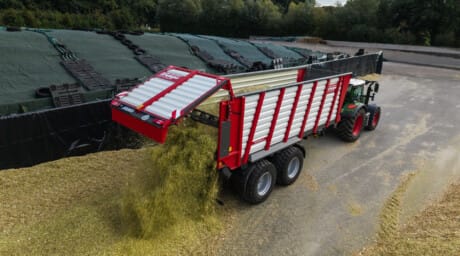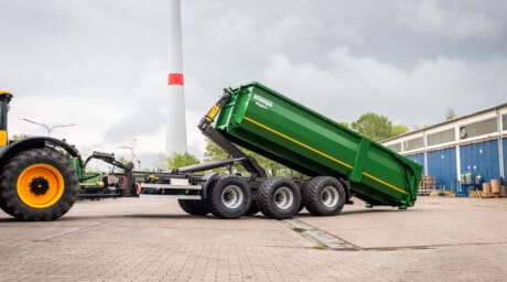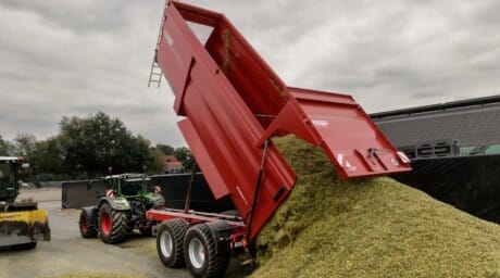 Moderne afskubbervogn, der minimerer væltning og muliggør aflæsning i lave haller. Velegnet til græs, majs, flis, korn og møg. Fås med 2 eller 3 aksler.